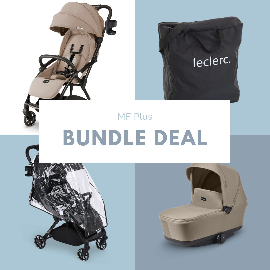 MF Plus vastab kõrgeimatele kvaliteedi- ja ohutusstandarditele ning komplekti kuuluvad neli vajalikku aksessuaari. Kui Leclerc Baby MF Plus kärule kinnitada Leclerc Baby vankrikorv, saab selles sõidutada ka vastsündinut.